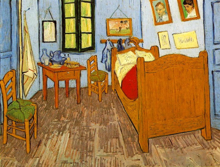 En fin, te envío un pequeño croquis para darte una idea aproximada del giro que toma el trabajo. Porque hoy me he vuelto a poner a la tarea. Tengo los ojos fatigados todavía; pero en fin, tenía una idea en la cabeza y éste es el croquis. Siempre tela de 30. Esta vez es simplemente mi dormitorio; sólo que el color debe predominar aquí, dando con su simplificación un estilo más grande a las cosas para llegar a sugerir el reposo o el sueño en general. En fin, con la vista del cuadro debe descansar la cabeza o más bien la imaginación.