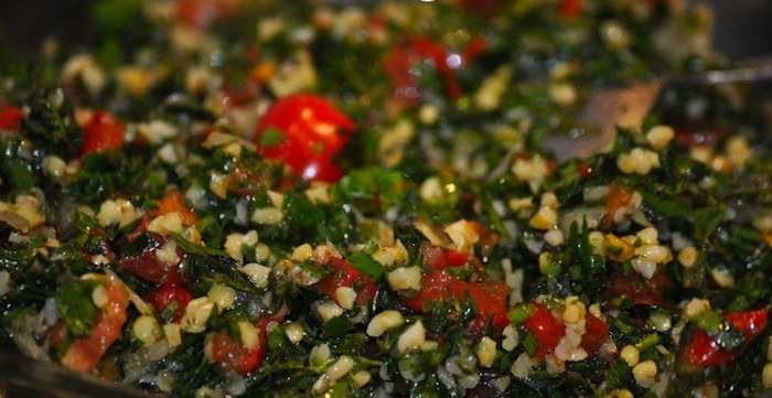 El tabule o tabbouleh es la ensalada tradicional del Líbano, compuesta principalmente de perejil, tomate, cebolla, trigo, la menta y marinada con zumo de limón, aceite de oliva y sal. Es fresco y lleno de vitaminas, ideal para el verano.