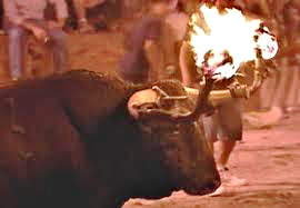 Pese a que la mayoría de estas barbaries ocurren en poblaciones de la Comunidad Valenciana, por desgracia en mi tierra, la terrorífica guinda la ponen en una localidad vallisoletana de ya macabra fama llamada Tordesillas. A mediados de Septiembre todos en el pueblo participan de uno de los más crueles espectáculos que el racional ser humano es capaz de ofrecer cuando centenares de cafres armados con lanzas acorralan al toro, hiriéndolo gravemente hasta que uno de ellos, considerado un héroe, acaba con la vida del pobre animal. Parece increíble que esta brutalidad sin límites sea considerada, en un país que se pretende civilizado, fiesta de interés turístico.