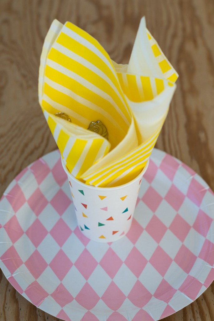 El menaje, como en muchos casos, es el atrezzo perfecto. Servilletas de papel, platos de plástico o cartón (que además nos evitaran trabajo detrás de la jarana) serán los elementos que le darán color a la mesa, y que potenciara nuestra atención aun mas.