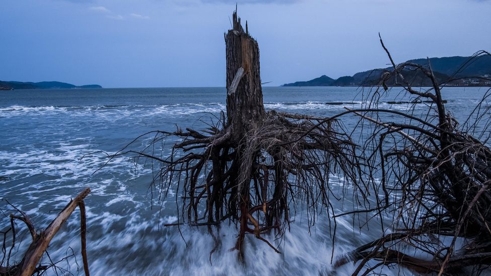 Tercer Premio por la categoría de noticias generales. Algunos pinos arrancados durante el tsunami de Japón, esparcidos por la playa/Fotografía: Daniel Berehulak