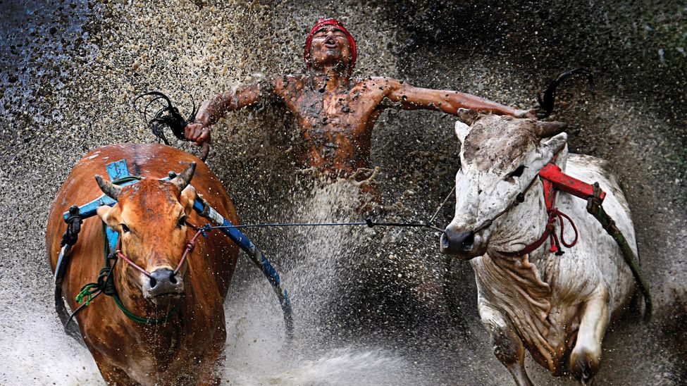 Primer premio del World Press Photo en la categoría de deportes (acción). Un jinete muestra alivio y alegría al finalizar una peligrosa carrera/Fotografía: Wei Seng Chen