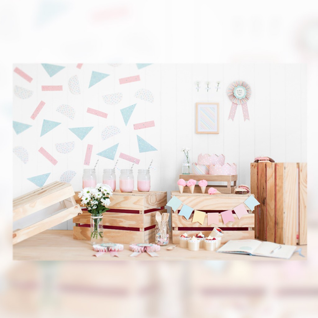 Guirnaldas de papel, libro de visitas, cucuruchos de algodón de azúcar, cubiertos personalizados… Unas sencillas y efectivas ideas para disfrutar de vuestra party.