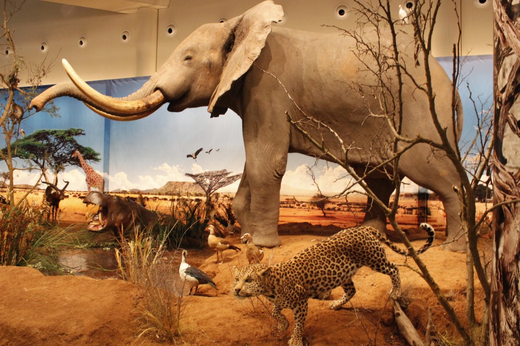 Los esqueletos son auténticos y todos los animales son ejemplares naturalizados mediante taxidermia, excepto el hipopótamo y el rinoceronte, que son reproducciones.