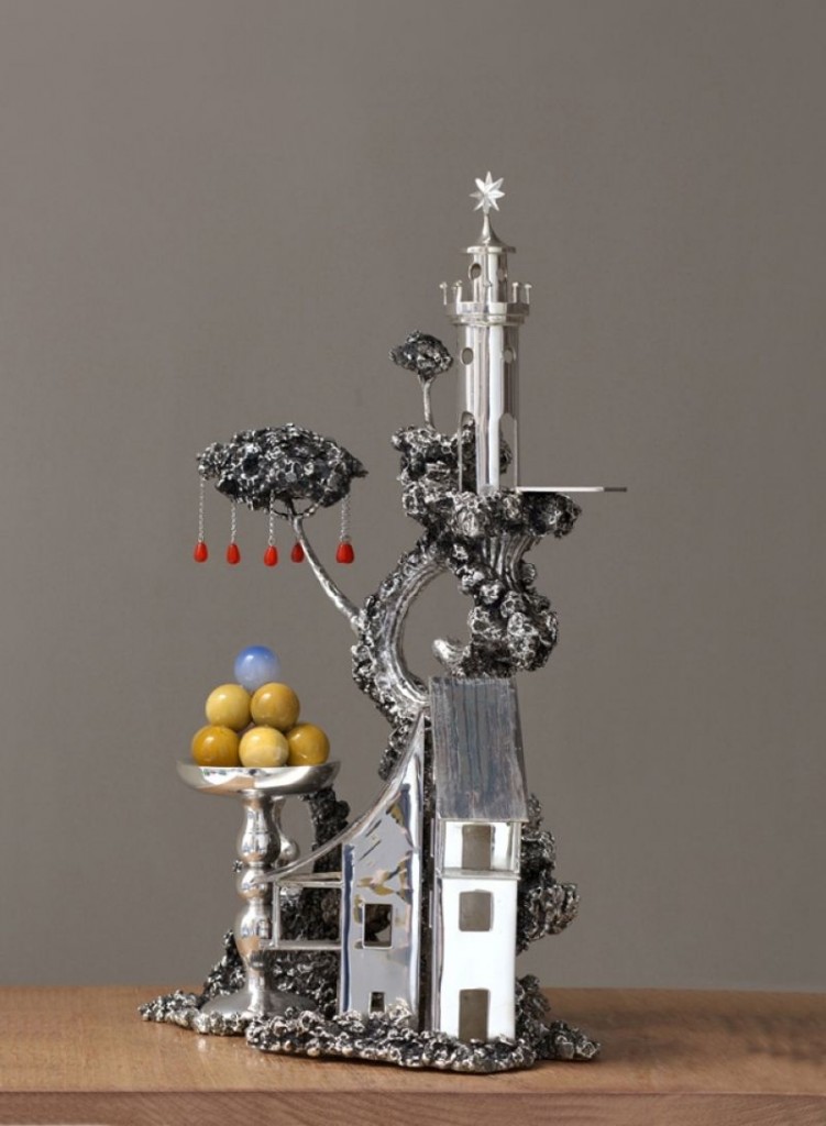 A esto precisamente alude, en el texto de la ya recomendada exposición de Sevilla, cuando declara a Oscar Alonso, en referencia a sus recientes trabajos en platería: «Todo arte superior es al final puramente ornamental», para añadir a continuación, cómo este aspecto «aparece en nuestras vidas paliando de continuo la mera utilidad de las cosas, que terminaría convirtiendo el día a día en un mecanismo árido que por exceso de funcionalidad deja de producir los beneficios deseados al proyectarlo. Necesitamos continuamente la ración de placer, lo mismo que la del sueño, para no hundirnos en lo demencial. A pesar de cuanto se ha dicho en el siglo XX, el sueño me parece puro juego de azar, un mecanismo que no se somete jamás al sentido; y del arte diría otro tanto. Ésa es la utilidad radical del arte, y no hay más allá. Desaparecido tal lado placentero, ahora sí que entendido en el sentido más metafísico, ya no hay arte.»