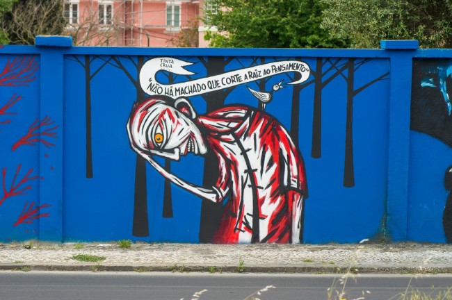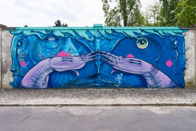 Una agradable locura. Como el primer verano del resto de nuestras vidas. Acabó ya, aunque todavía quedan los recuerdos de cuando comenzó allá por Lisboa, inventariando el arte de sus muros. Locura y muros, esto es lo que tienen en común las intervenciones patrocinadas por la GAU de los rostros do muro azul en el Centro Hospitalar Psiquiátrico de Lisboa. Estas son las fotos de las primeras fases, ahora hay ya algunas más.