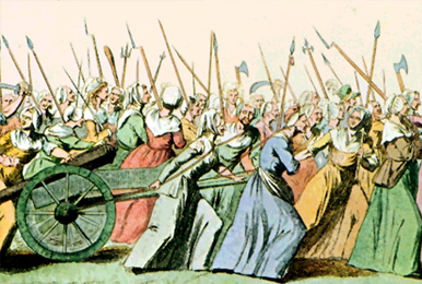 Aquella mañana la desesperación pudo con un grupo de ciudadanas que decidieron marchar hacia Versalles después de intentar asaltar el Ayuntamiento de París. En el palacio donde se escondía el rey y se reunía la Asamblea Nacional, aquellas mujeres consiguieron hablar con el rey y arrancarle la promesa de liberar las reservas de grano.