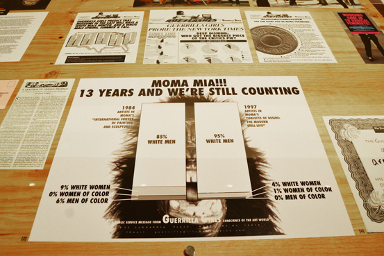Por ello el cartel -utilizado anteriormente por sufragistas de los sesenta y setenta- ha sido el principal soporte con el que ha experimentado el colectivo. Los emblemáticos pósters de Guerrilla Girls se distinguen inmediatamente porque juegan a estetizar la estadística, ciencia del Estado.