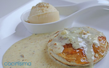 Emplatar la tartita con la salsa, se acompaña con helado de mantecado.