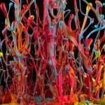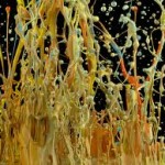 De esta manera, durante todo un año, Klimas pasó muchas horas capturando lo que él llama “esculturas sonoras” de una variedad de músicos, desde Jimi Hendrix y Pink Floyd hasta Philip Glass, pasando por Johann Sebastian Bach. “Yo uso un altavoz normal con una membrana protectora en forma de embudo en la parte superior de la misma,” dice el artista visual. “Coloco pintura de colores sobre la membrana de goma, y luego me retiro de la instalación.”