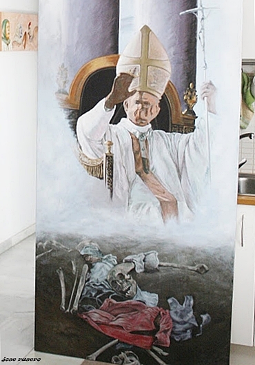 En sus cuadros es fácil observar muchos rostros inacabados: ‘Una persona no acaba nunca de realizarse, por eso no me gusta terminarlos’, apunta. Siente las cosas, el mundo, lo que sucede a su alrededor. Se compromete (en 2012 fue denunciado uno de sus cuadros por ‘atentar contra la Iglesia’: http://www.lasprovincias.es/v/20121205/alicante/vecino-villena-denuncia-exposicion-20121205.html), lo expresa y nos lo relata en sus lienzos. La discriminación de la mujer, el sida y el vergonzoso papel de la Iglesia, la injusticia y, en resumen, los Derechos Humanos en toda su amplitud, pueblan su obra pictórica.