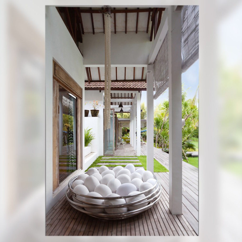 De entrada os advierto que estas imágenes pueden provocar serios ataques de envidia… ¿Por qué? os preguntaréis. Porque esta mansión reúne una serie de requisitos que la hace simplemente maravillosa. Su deliciosa arquitectura tradicional balinesa combinada con muebles de diseño actuales, originales detalles decorativos, pinceladas de colores tropicales… sin olvidar su exuberante vegetación y los paisajes de postal de Bali.