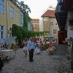 Estonia es un país pequeño, lleno de lagos, que nunca ha querido dominar, que ha sido dominado. Las huellas de los rusos dominantes están por todas partes. En lo alto del castillo de Toompea está la iglesia rusa de Alexander Nevsky que simboliza esa dominación. Como siempre los rusos se instalaron en la parte más alta. Pero en el interior del castillo se siguen las callejuelas, las casas antiguas, las placas que indican personajes ilustres, las placitas cerradas, los paseos asomados sobre la ciudad. Y desde allí se ve toda la muralla medieval y todas las agujas de las iglesias góticas que se levantan por todas partes. Dos calles paralelas, Pikk y Lai serpentean hacia el puerto , donde se levanta una puerta impresionante, con una torre a la que llaman La Gorda, donde se ha instalado la oficina de turismo. Y siguiendo esas dos calles se recorren fuentes ornamentales, casas antiguas de los gremios, antiguos hoteles en casas tradicionales, placas que recuerdan hechos, confiterías sugerentes, viejos cafés con encanto. Nos fijamos en san Olaf, con un jardín de árboles góticos, con los muros ennegrecidos. Y las Tres Hermanas, tres casas coquetas del siglo XV con sus mástiles para cargar mercancías.