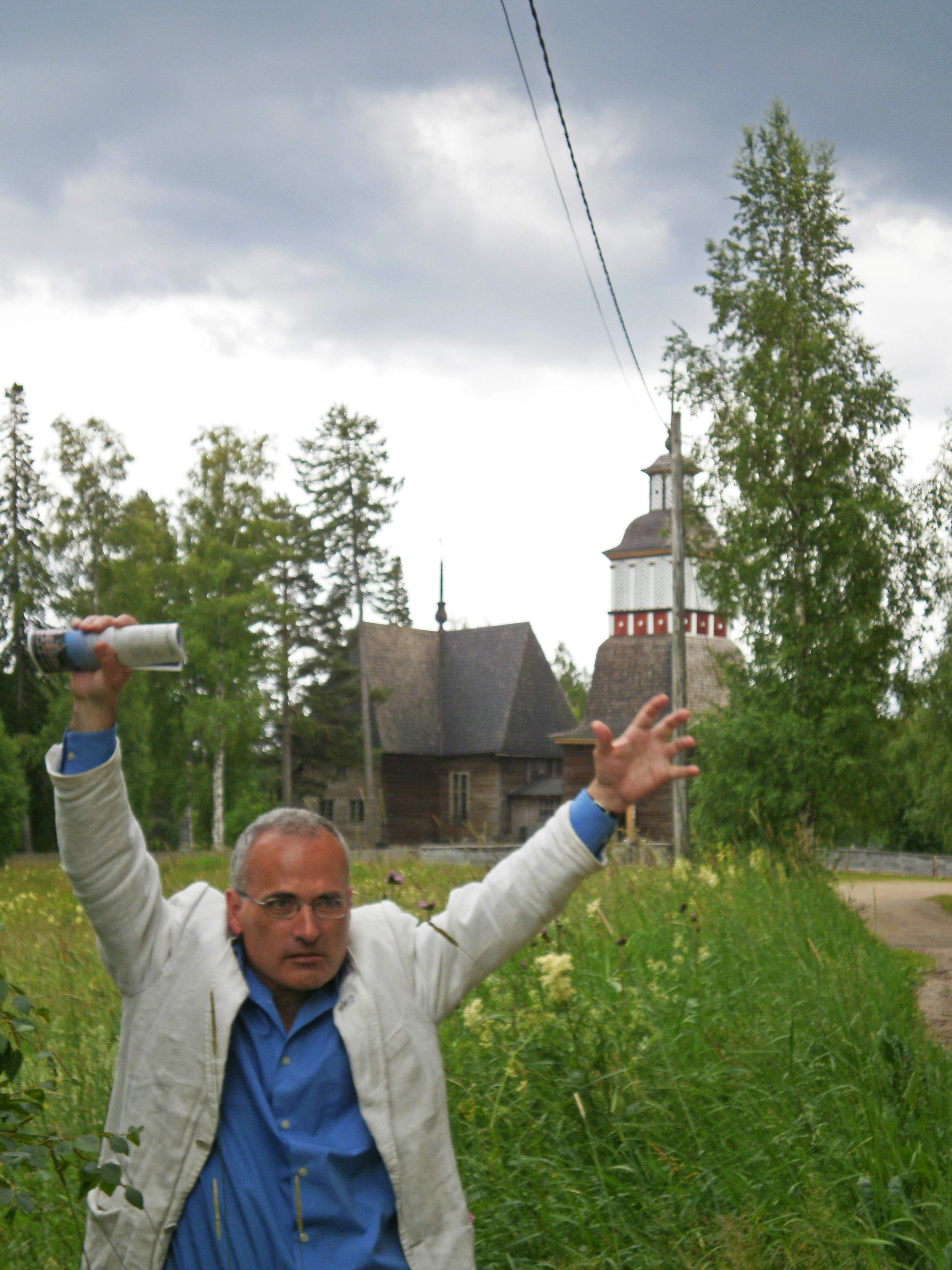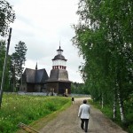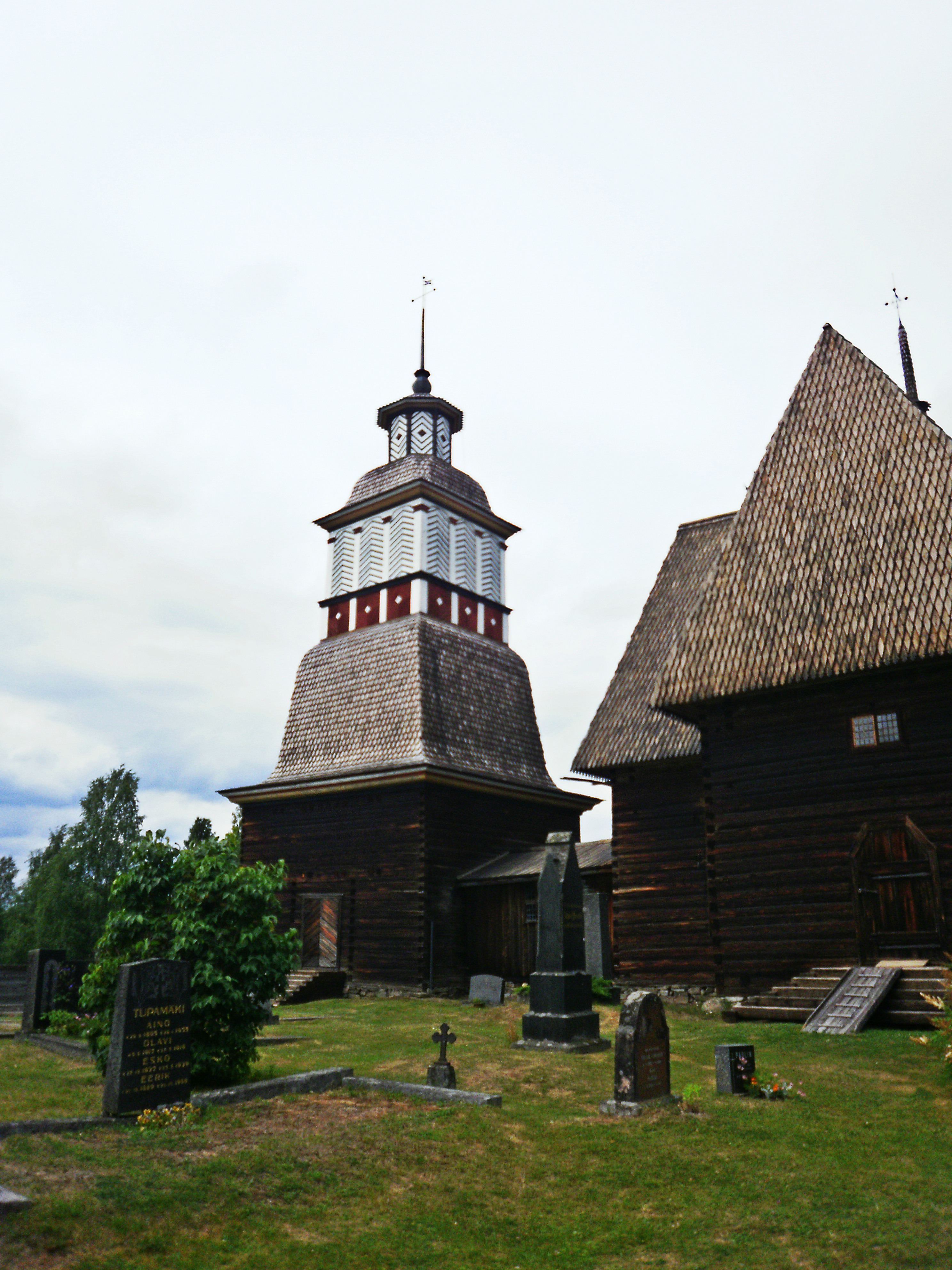 Cogimos un tren desde Tampere a un pueblo perdido hacia el norte que iba bordeando mágicamente varios lagos. En esa dirección había otros destinos increíbles, la Ruta del Poeta hasta Virrat, la ruta 66 que pasa por una taberna de madera del siglo XVIII y la mansión de verano de Gallen-Kallela, el barco Elias Lonrot que navega por el lago Keurusselka , la casa de Serlachius en Manta que tenía La Entrada al Hades de Hugo Simberg , la sucesión de villas, Jyvaskilla con el museo Alvar Aaalto. Nosotros íbamos en connivencia con el lago Keurusselka hacia el norte dejando que nos insinuara todos los sueños, en un tren tranquilo que viajaba por zonas sin molestias. Paramos en una estación solitaria, donde había unos cuantos edificios de modesta elegancia, al lado de un aserradero y había que esperar durante un tiempo. Parecía que nos íbamos a quedar allí, atravesamos las vías y entramos en un bosque, tal vez no llegaría ningún otro tren, no aparecía nadie, se asomaban casas inverosímiles, los senderos discurrían invitadores. Y un tiempo después apareció el otro tren, que nos llevó hacia el este hasta llegar al pueblo privilegiado. Pero tampoco era allí el destino, tuvimos que caminar por una carretera que parecía no llevar a ningún pueblo, después aparecían tímidamente algunas casas, luego se cruzaba una plaza desdibujada, se seguía caminando por la carretera sombría más allá de un río. Dudábamos de que la iglesia existiera, estábamos a punto de volver, nos parecía estar perdidos en la inmensidad de Finlandia. Paramos a un coche y nos dijo que la iglesia existía y que faltaba poco. Seguimos caminando cuesta arriba, escuchando riachuelos, observando muros de piedras planas. Hasta que la construcción se esbozó a lo lejos.