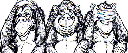 Estos tres simpáticos monitos han sido por siglos fuente de sabiduría en la cultura japonesa. Mizaru, Kikazaru, Iwazaru -no ver, no oír, no decir- muestran, en el lenguaje universal de los gestos, lo que cada uno de los tres recomienda como filosofía de vida. Según la antropóloga japonesa Emiko Ohnuki-Tierney, catedrática de la Universidad de Wisconsin, existía un «código filosófico y moral santai: entre el pueblo el sentido era «rendirse» al sistema, obedeciendo un código de conducta que recomendaba la prudencia de no ver ni oír la injusticia, ni expresar la propia insatisfacción, lo que perdura hasta la actualidad».