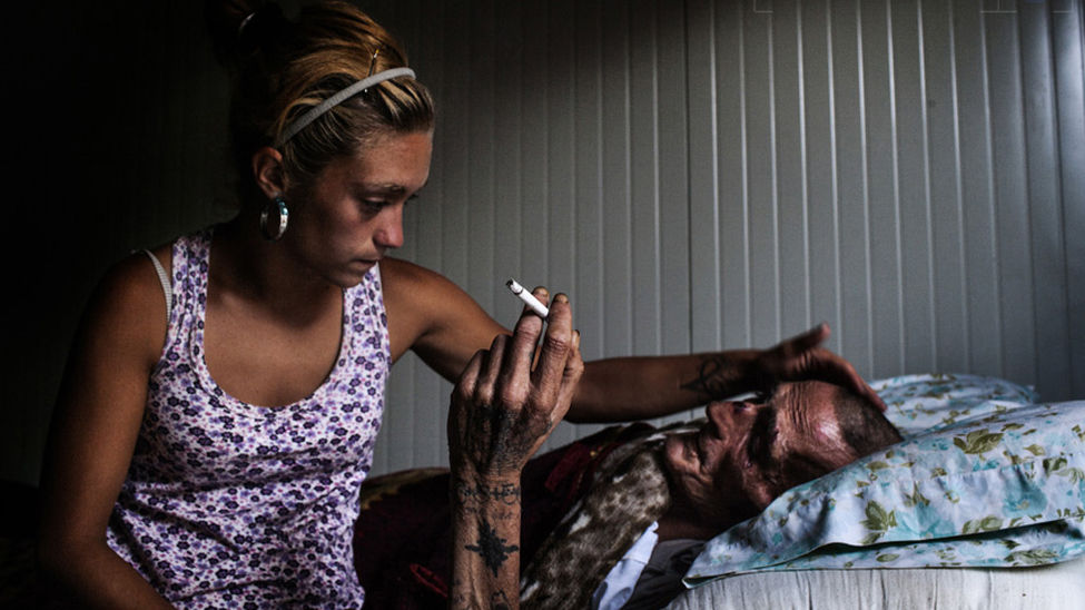 Ana, una de los residentes más jóvenes de La Casa de la Buena Vida , cuida de Juan. Juan, de 49 años, tiene SIDA y fue dado de alta recientemente cuando los médicos no pudieron hacer nada más por él. No tiene familia, su única «familia » es la de La Casa. La Casa es un refugio poco común, así como el centro de rehabilitación ubicado en una casa de campo en las colinas de Palma Palmilla, Málaga. Fue creada en 2006 por Jesús » Chule » Rodrigues, quien después de haber luchado contra la adicción a las drogas y el tiempo en la cárcel, decidió ayudar a los que están en la misma situación que él. La Casa cuenta con una política de puertas abiertas para cualquier persona que viene en busca de ayuda y refugio, así como apoyo para salir de las garras de las drogas y el crimen. El número de personas que viven allí fluctúa entre 30 y 80 personas. Aunque originariamente La Casa fue un lugar para la rehabilitación, también ha acogido con satisfacción a familias de inmigrantes sin recursos y sin lugar al que acudir, así como a los inmigrantes subsaharianos/ Wai Hnin Tun.