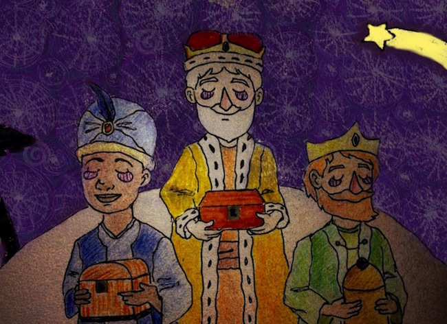 -¡No olvides sacar nuestros cofres de oro, incienso y mirra! –dice el Rey Melchor– Recuerda que fueron nuestros regalos al Niño Jesús.