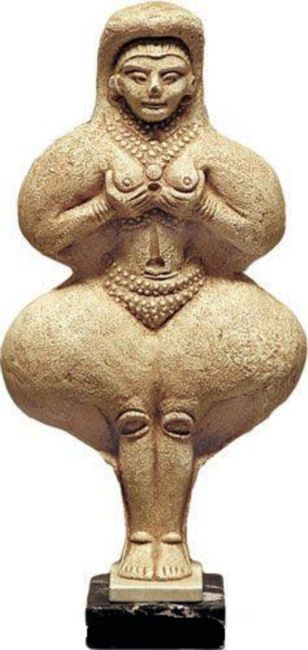 Basándose en los hallazgos de la antropología, muchos autores han concluido que en estas culturas valores como el poder, la conquista y el heroísmo, tan propios de la cultura occidental clásica, parecían estar prácticamente ausentes. En su lugar, predominaba un universo simbólico que orbitaba en torno a los valores maternales, la fertilidad, la belleza y la cooperación colectiva. “Las divinidades de estos pueblos no llevan lanzas, espadas ni relámpagos, ni se han hallado sepulturas de jefes especialmente lujosas que sugieran una organización jerárquica de la sociedades con líderes poderosos y una población sumisa. No existen imágenes que celebren la guerra, ni siquiera que la representen… no se había hecho hincapié en la elección de lugares elevados, en construir muros de tamaño desmesurado o armas para protegerse de los enemigos. Aún más, la colina o montaña se elegía como lugar de construcción de un santuario, no como campamento fortificado o ciudadela… Más bien, incontables ilustraciones de la naturaleza atestiguan el sentido que estos pueblos tenían de la belleza y de la sacralidad de la vida.” (Anne Baring & Jules Cashford, El Mito de la Diosa, 1991).
