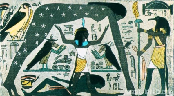 El dios egipcio Shu (aire) separando a las diosas Nut (cielo) y a Geb (tierra), c. 1000 a.C.