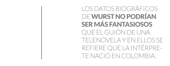 Por su parte, los datos biográficos de Wurst no podrían ser más fantasiosos que el guión de una telenovela y en ellos se refiere que la intérprete nació en Colombia. Así mismo, indica que su madre fue una conocida actriz y su padre un exitoso director teatral, quienes bautizaron a Conchita en honor a su tatarabuela, una mujer a la que llamaban “la barbuda”.