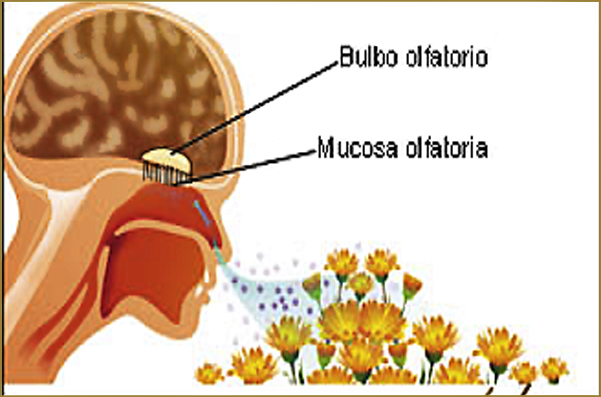 El sentido del olfato se activa por una proteína que se produce en una glándula de la nariz. Cuando respiramos, es emitida una proteína odorante de descarga (POD) que en la punta de la nariz se mezcla con las partículas transportadas por el aire; ese compuesto hace actuar los receptores situados en el epitelio olfatorio, que se encuentra en la parte alta de la cavidad nasal. Este epitelio contiene 20 millones de células nerviosas receptoras, con fibras propias que van a los nervios olfatorios. El extremo de cada célula olfatoria de la superficie epitelial presenta varios cilios que reaccionan a las sustancias químicas. Esas son reemplazadas en pocas semanas por otras.