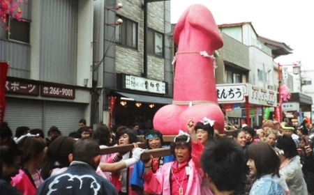 Cada primavera los japoneses celebran su Kanamara Matsuri (Festival del falo de metal), encontrándose éste presente durante todo el festival en forma de ilustraciones, dulces, decoraciones, vegetales esculpidos e incluso en un mikoshi (capilla).