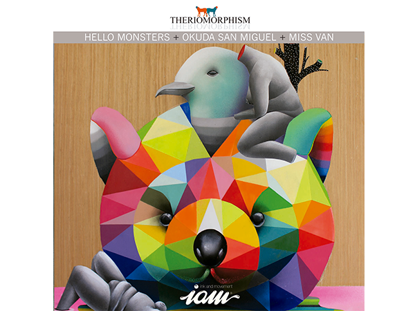 Otra cita ineludible de la semana es, sin duda, Theriomorphism de iam Gallery. Una muestra de 3 artistas de excepción (Miss Van, Okuda y Hell´O Monsters) en la que los creadores orbitarán en torno al concepto de teriomorfismo para mostrar al público una exposición que desde su anunció viene siendo uno de los eventos más esperados de esta semana. Miss Van, Okuda y Hell´O Monsters, destacan por tener backgrounds artísticos similares. Fuertemente relacionados con el arte urbano, sus trabajos han dado la vuelta al mundo convirtiéndose en referentes culturales del circuito artístico internacional más joven y actual.