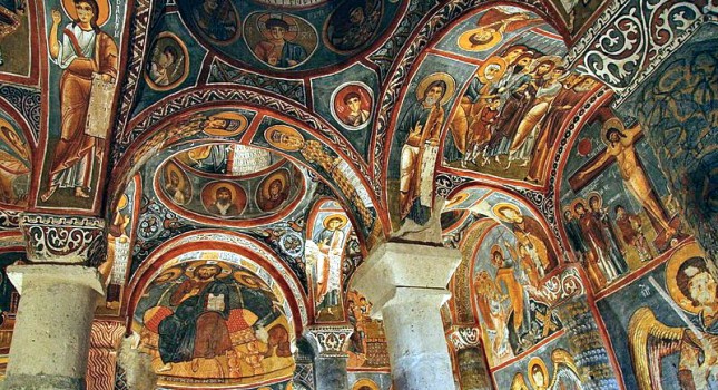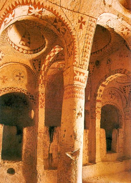 Los primeros datos que se conservan de actividad monástica en Capadocia datan de siglo IV, cuando encontramos comunidades de anacoretas que comienzan a habitar celdas de pequeñas dimensiones labradas en la roca. Los primeros pueblos y ciudades -Kaymakli y Derinkuyu- son el resultado de la necesidad de protección de estas comunidades frente a las invasiones árabes. Sin embargo, es a partir del siglo VIII, y especialmente a partir del IX con el final del periodo iconoclasta, cuando comenzamos a encontrar los frescos que han hecho a estos santuarios mundialmente conocidos.