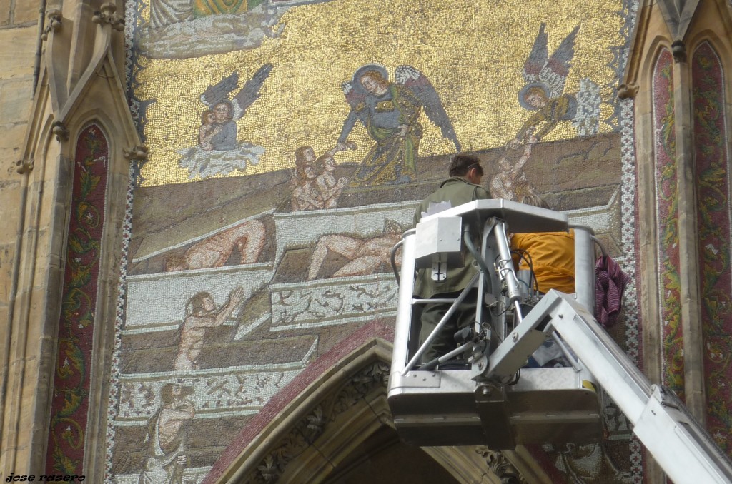 Entre sus numerosos tesoros destaca la Puerta de Oro, que en tiempos de los reyes fue la entrada al templo. En su parte externa presenta un mosaico del siglo XIV de cristal de Bohemia, que evoca el Juicio final. Cerca de ella se alza el Obelisco erigido en honor del décimo aniversario de la República y, a la derecha de la puerta de Oro, un pasaje elevado que conecta el Palacio Real con la Catedral.