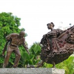 La verdad es que yo solo estuve en la desembocadura, en Barranquilla. La gente solo habla de Cartagena de Indias, lo más turístico, pero Barranquilla fue la capital económica y cultural de Colombia mucho tiempo y allí surgieron muchas cosas. Entre ellas las primeras obras de García Márquez. Recuerdo cuando estuvimos en el restaurante La Cueva, donde se reunía Gabo con el pintor Obregón y otros, y una vez apareció el pintor montado en un elefante y allí Gabo escribió el cuento “El ahogado más hermoso del mundo”. Fuimos por el barrio de las putas donde vivió un tiempo Gabo cuando empezaba en el periodismo. Visitamos a la poetisa Meira Delmar, gran dama de origen libanés que nos contaba cuando Gabo la visitaba por sorpresa y nos decía sus versos: “En las estancias ruecas detenidas/ hilaban solo un nombre y otro nombre” . Vimos el museo romántico, donde hay un montón de cosas, una marioneta de una actriz que parece estar viva, la máquina con que se escribió “Cien años de soledad”. Acabamos en la desembocadura del río Magdalena, junto a Puerto Colombia, en la casa de Eduardo Daconte, cuyo padre llevó el cine a Macondo, que contaba historias mágicas, había visitado ochenta países, había sido monje en la India.