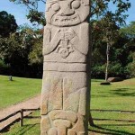 Pero me imagino todo lo demás. El río nace haciendo profundos abismos al sur de Colombia, en san Agustín, donde hubo una cultura muy importante, que floreció entre los siglos V y X y fue destruida seguramente por los incas. Hay grandes figuras ciclópeas de aspecto misterioso. Se ve una pareja ceñuda, un hombre melancólico con ojos alucinados, un tipo que se ríe con la nariz achaparrada. Cerca de allí esta la gran fuente ceremonial de Lavapatas, con lagartos de piedra, iguanas, sapos, Dios sabe qué purificaciones se realizarían allí.