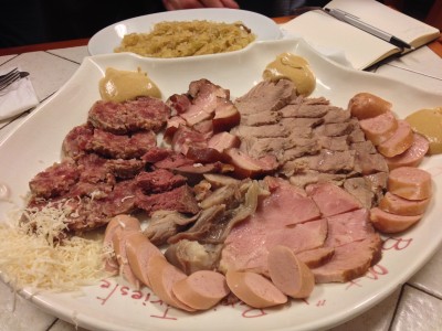 Por cierto, allí comen pronto y cuando decimos pronto nos referimos a que a las 12.30 ya nos levantábamos almorzados del Buffet Da Peppi, una trattoria, tienda de delicatessen abierto en 1897 en la Via della Cassa di Risparmio. Delicioso su porzina con capuzi, carnes de cerdo hervidas acompañadas con cappucci garbi o crauti (col fermentada o choucroute), aliñado con mostaza y rábano picante, y birra, aquí sí, en versión original. Comimos uno de sus platos típicos, cocina eminentemente europea, la famosísima choucroute garnie, plato que nos recuerda una vez más su pasado austrohúngaro y que en el castillo de Miramar veraneaba nada más y nada menos que Sissi, Isabel Amalia Eugenia Duquesa en Baviera, Emperatriz de Austria y Reina de Hungría.