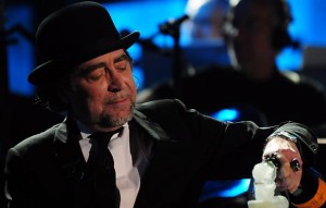 Spanish singer Joaquin Sabina serves a drink during a concert with Joan Manuel Serrat (not pictured) called «Two Birds Counterattack» at the Movistar Arena in Santiago, Chile, 7 December 2012. EFE/Ariel Marinkovic