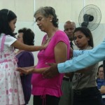 Están ahí para ser tocados por la pequeña misionera Alani Santos, la hija de un pastor. Ellos creen que Dios le ha dado el poder para echar fuera demonios y sanar a los enfermos.