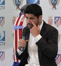 El delantero del Atlético de Madrid, Diego Costa, hoy en el estadio Vicente Calderón, durante la presentación de la II Copa