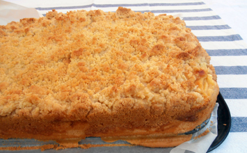 Con ayuda de un rodillo formamos una placa del tamaño de la bandeja de horno de la masa principal, cubrimos la placa con el pudding y añadimos el crumble por encima. Horneamos en el horno precalentado a 180º durante 50 minutos.
