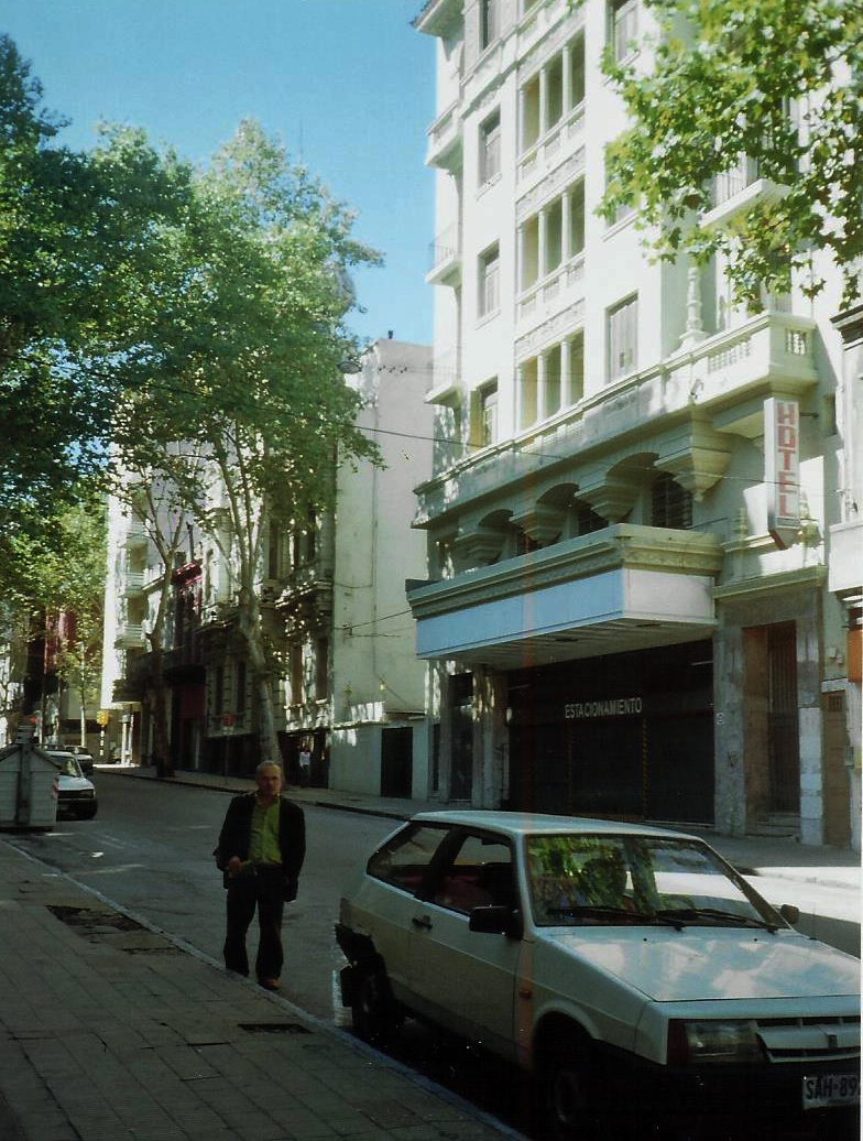 Yo había leído un artículo de Enrique Vila Matas que hablaba del hotel Cervantes, contaba que Adolfo Bioy Casares se había alojado en el primer piso en la habitación número 12 y había escuchado las quejas de un niño en otra habitación detrás de un armario, y había escrito un relato, tiempo después sin saber nada Julio Cortázar se alojó la misma habitación y escuchó el mismo ruido y escribió un relato similar, Vila Matas pensaba alojarse después, yo quería ir a ese hotel y pedir esa habitación, pero cuando llegamos lo encontramos abandonado, le hicimos fotos por fuera, miramos los balcones ajados y las cornisas sin sentido.