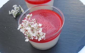 Fundimos la gelatina ablandada y cubrimos la pannacotta fría.