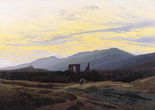 Y mucho después además me entero de que pasé al lado de los Montes Gigantes, donde fueron tantos poetas del romanticismo, donde escribió La Motte Fouqué su balada “El pastor de los Montes Gigantes”, sobre un pastor que es capaz de matar a un dragón por amor a la hija de un duque, donde Caspar David Friedrich pintó sus cuadros más relajados, como si hubiese llegado a la infancia, como si la metafísica fuese algo suave y sin amenazas, y la cruz en lo alto de “Amanecer en los Montes Gigantes” más que la trascendencia apabullante de otros cuadros mostrase a un crucificado alegre y ligero en lo alto de la montaña y la soledad y el asombro se convirtiesen en un cuento de hadas. Tantas veces nos ocurre eso, pasamos al lado de una fiesta fantástica y no nos damos cuenta, la princesa secreta nos roza con los labios y ni nos enteramos, han dejado para nosotros una carta en el pozo y pasamos toda la vida sin recogerla. Yo al menos me he dado cuenta en cierta grado casi treinta años después. Y tal vez sea mejor así, que guarde ese recuerdo sin darle importancia, para no estropearlo con frases sonoras, para no molestarlo con mis inquisiciones.