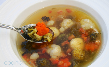 Ponemos agua con sal a hervir, bajamos el fuego, añadimos las bolitas de sémola y dejamos 10 minutos.
