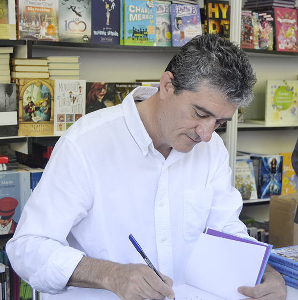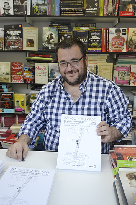 En la caseta de LATORRE LITERIA encontré a Ángel Idígoras, el dibujante que ilustra las viñetas y guiones de su hermano formando el equipo de Idígoras y Pachi. Los autores de …El Marordomo real…El humor gráfico elevado a arte…