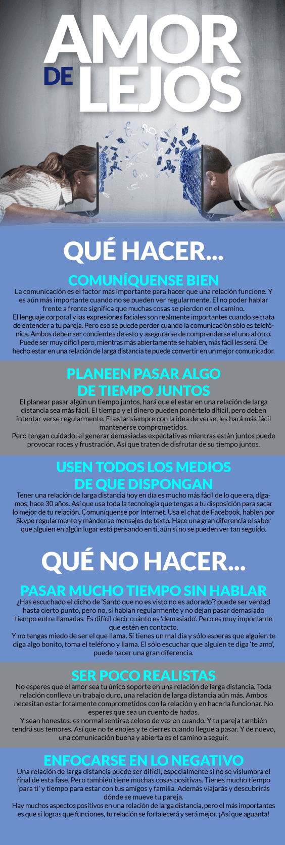No te preocupes. Hazle caso a estos consejos de nuestra serie ´qué hacer y qué no´ y veremos hasta donde te lleva el amor.