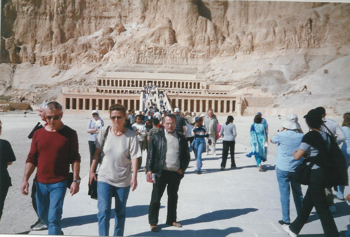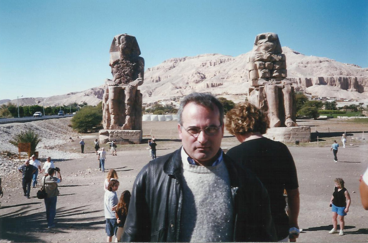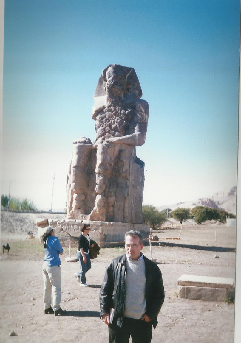 Estaba en Luxor y pasé al otro lado del Nilo para visitar el Valle de los Reyes, donde están las tumbas con pinturas alucinantes de los faraones. Pero antes pasé por los Colosos de Memnon, donde están las enormes estatuas maltrechas que quedan del templo de Amenofis III. Por no sé qué causas físicas emitían un sonido y los griegos creían que Mennon llamaba a su madre, la diosa del Amanecer. Y luego pasé por el grandioso templo de Ramsés II, donde se ve su estatua grandilocuente tirada en trozos en el suelo. Y luego vi el grandioso templo de la reina Hatshesupt y eso fue lo que me impresionó para siempre.