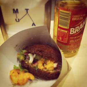 Un quindim (flan de coco) y ya, ahora sí, llega el momento de abandonarse a la irresistible barra de caipis y batidas de frutas naturales de MUTA : sandía, uva, maracuyá, mango. Espectacular la mixta con vodka o cachaça. Imposible probar solo una.