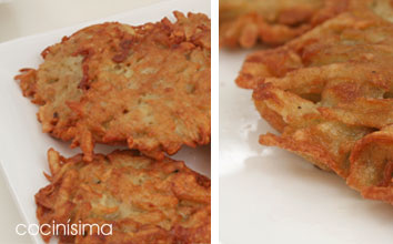 Calentar en una sartén el aceite y añadir con ayuda de una cuchara la masa, de modo que se formen tortitas, freirlas por ambos lados.