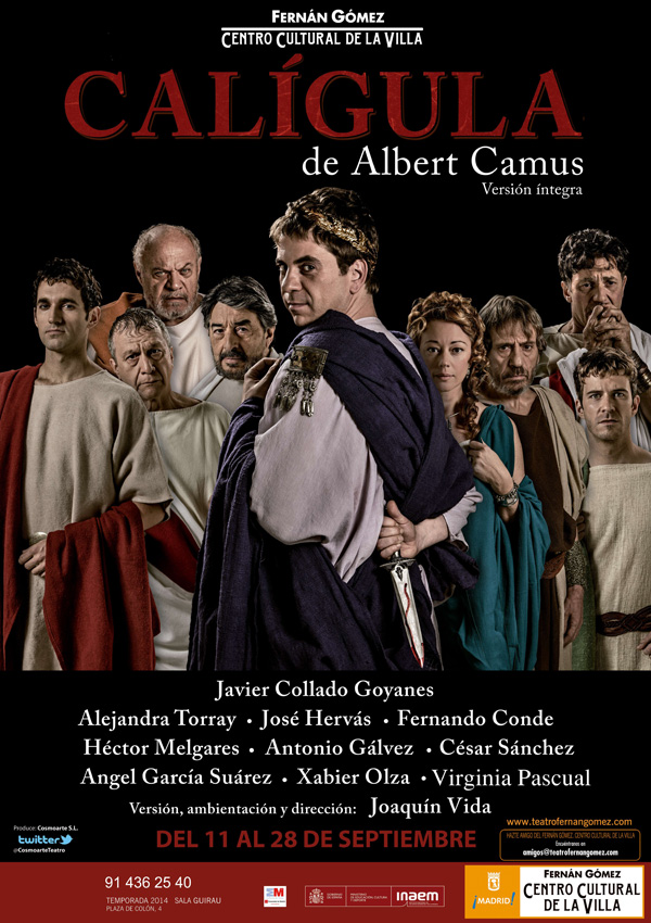 Aún están a tiempo de acudir a disfrutar al Teatro Fernán Gómez de la que probablemente ha sido la mejor obra del año, Calígula. Joaquín Vida dirige esta adaptación de la obra íntegra del dramaturgo argelino Albert Camus, un resultado intachable tanto por el guión, un drama filosófico, político y existencialista como por la interpretación de los actores. Calígula mantiene al público atento, tenso y conmovido durante toda la representación. Se trata de una obra larga que se hace corta y sobrecoge al espectador apelando a sus sentimientos, razón y pudor; la intensidad de la obra como incentivo de reflexión y la fuerza de los personajes crean un estado de ciclogénesis interior donde se alía el huracán apolíneo y el dionisiaco en una tormenta de sentimientos enfrentados que les aseguro les durará varios días porque en esta ocasión la calma no llega tras la tormenta.