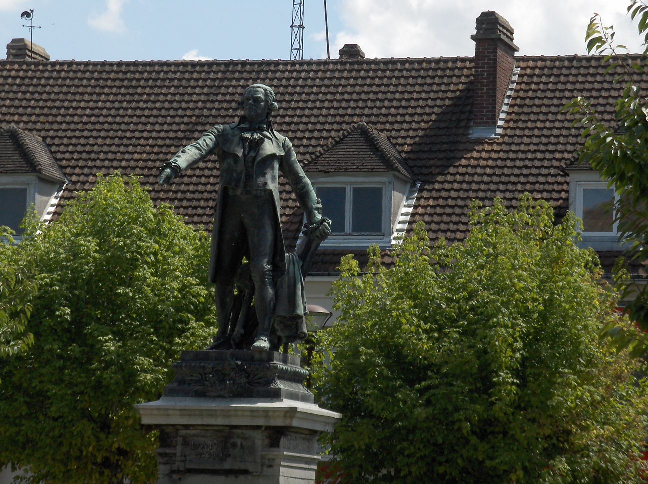 Regresábamos en coche desde Alemania y paramos en un pueblo de Francia a tomar un café. Resultó que se llamaba Arcis sur Aube y que era el pueblo natal de Danton. Me gustó eso, me atraía Danton lleno de vida en contra del afilado y muerto Robespierre, el funcionario de los conceptos implacables, tal como aparece en la película de Wajda. Vimos la estatua del hombre animando al pueblo y una iglesia gótica cubierta de linternas con un arco apuntado con muchos lóbulos colgando.