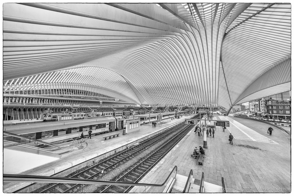 Y cuando íbamos desde Ámsterdam hasta Luxemburgo hicimos un cambio de tren en Lieja. La estación diseñada por Santiago Calatrava nos asombró como una tienda de campaña gigantesca, como un palomar agitado y deslizante. Y luego pasamos el río Mosa y vimos las escaleras tan largas que subían a la parte alta, y las fachadas escalonadas como parodias de pirámides . Y los viejos barrios fabriles pegados a la ciudad industrial con un encanto reluctante. La ciudad de cultura que se proclama con audacia y travesura. La hermosa que no se considera hermosa.