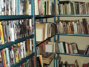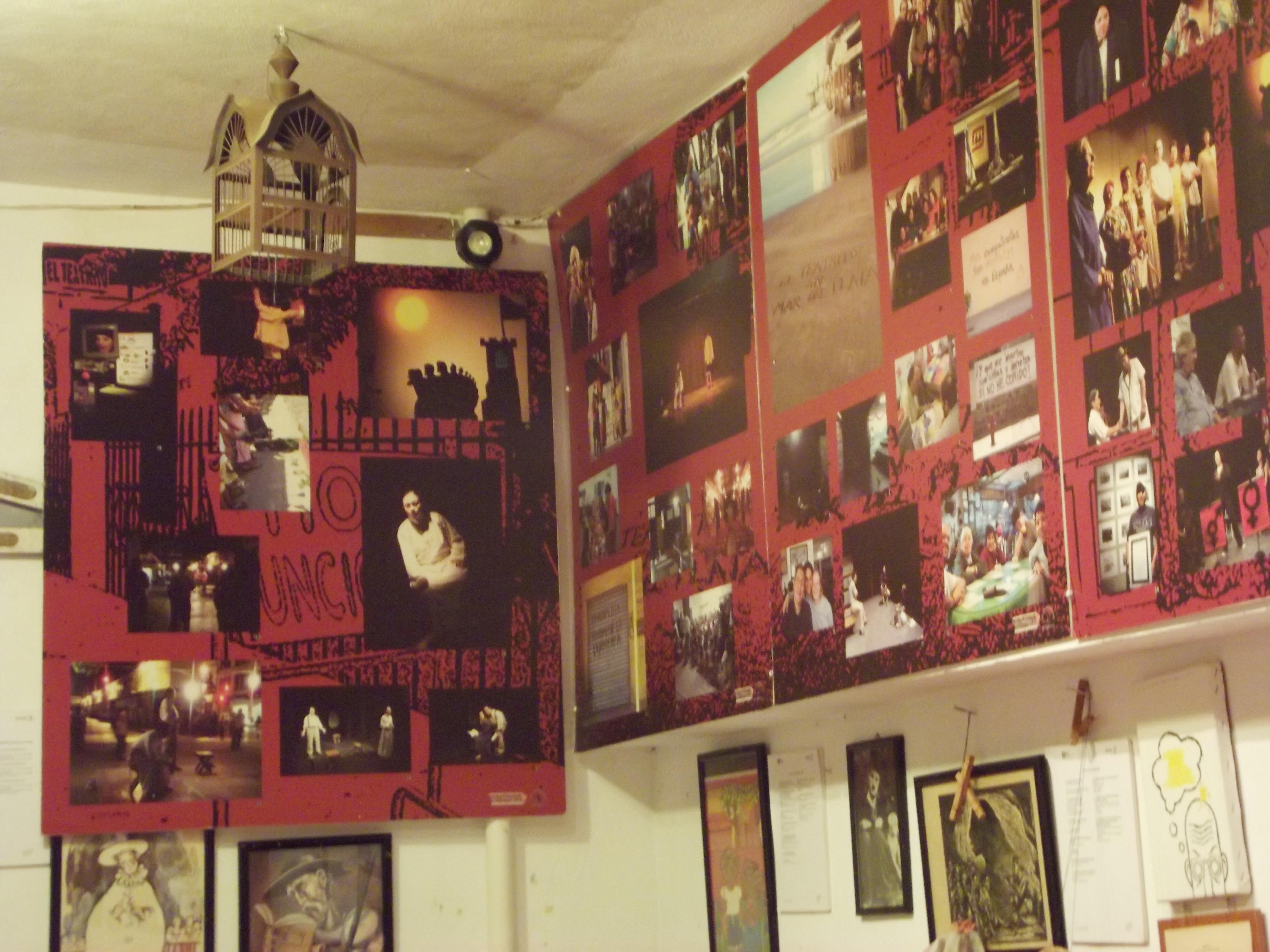 También está propiamente el espacio como Centro de Investigación Escénica, que cuenta con un foro, esta cafetería y una biblioteca de consulta con más de 5000 textos y más de 1 millar de películas. La mayor parte del contenido es de artes escénicas, poesía y cine, pero también abarca literatura universal completa, historia, una sección muy grande particularmente sobre España y la Guerra Civil Española, ya que algunos de nosotros venimos de ese origen y es el material que hemos ido acumulando durante nuestra vida y ahora ponemos a consulta de quien así lo desee.