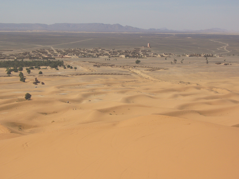 Hassilabied y Merzouga son dos pequeñas poblaciones cobijadas tras las dunas de Erg Chebbi, al sureste de Marruecos. Al igual que sucede en otros asentamientos del Sahara, la subsistencia depende del aprovechamiento de las reservas de agua ubicadas bajo la superficie. Sin embargo el sistema sólo es sostenible en la medida que la extracción de agua no exceda a la recarga natural que tiene el propio acuífero.